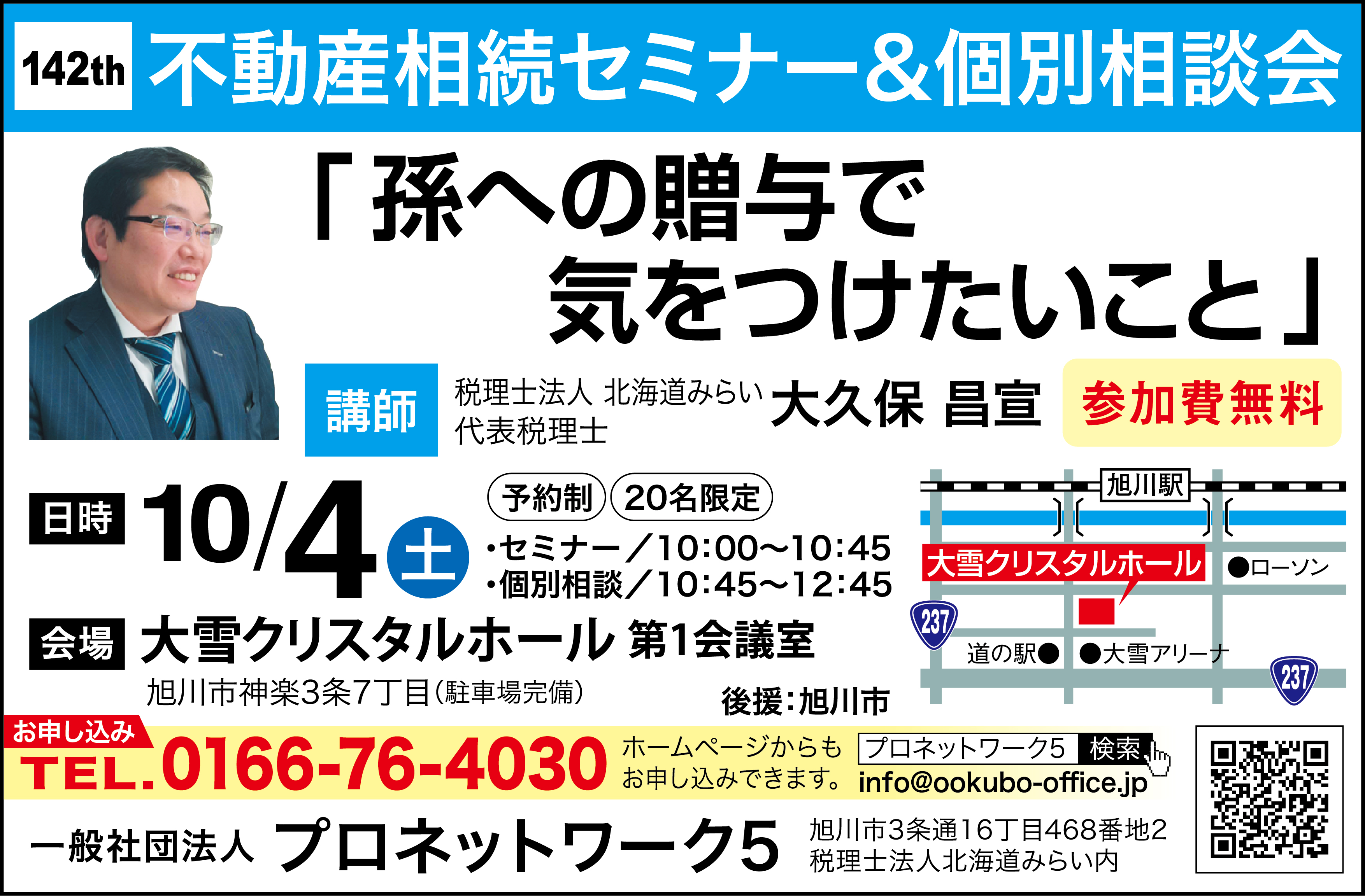 旭川のファイナンシャルプランナー・弁護士・税理士・不動産コンサルタント・社会保険労務士が解決します!